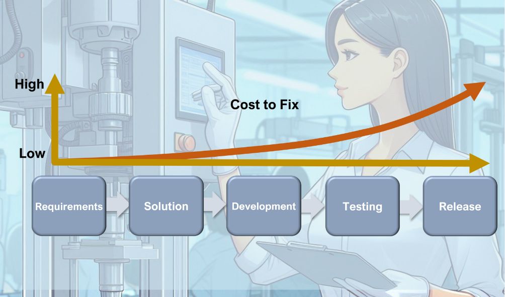 🤝 During Development: It costs a bit more in time and effort to redo an item if it gets this far and there’s a defect. We may need to re-look at the requirements and design too, and re-code the solution.