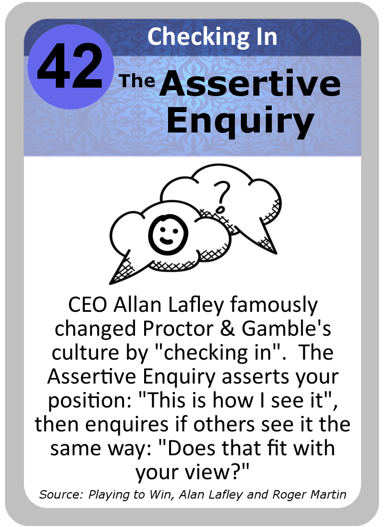 Leadership Card 042 Assertive Enquiry Published on July 7, 2018 in The Leadership Card DeckFull resolution (770 × 1058) ← Previous Next →