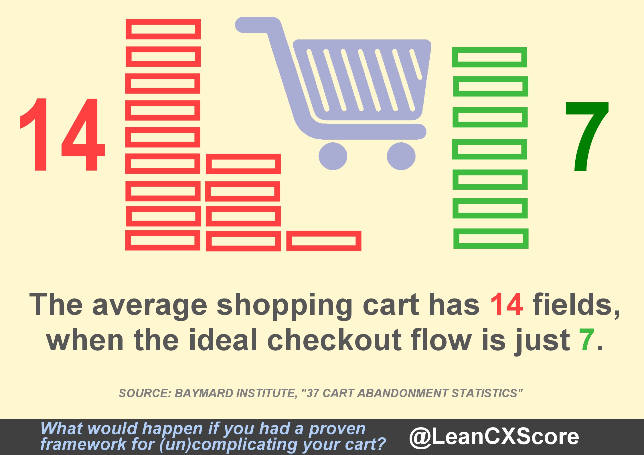 They’re answering “Long and Complicated” because they haven’t put in the work or thinking necessary to reduce the complexity in their shopping cart and make it as simple as it needs to be. And they haven’t put in the thinking because they don’t have a simple step-by-step framework like the Lean CX Score that is proven to make it simple and improve their profit as a result.